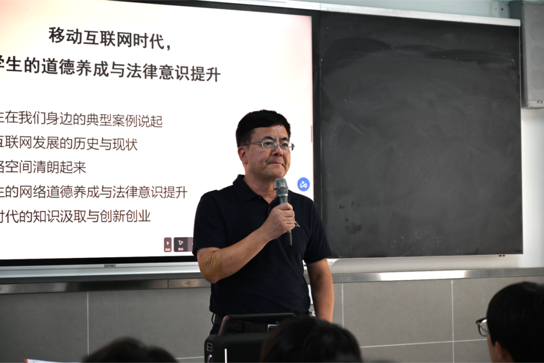 张贻发以身边典型案例破题,系统回顾移动互联网发展历程与当下现状,深刻指出清朗网络空间需师生共筑,他聚焦大学生网络道德养成与法律意识提升,深入剖析网络言论边界、个人信息保护等现实问题,明确大学生在网络中的责任与义务,引导学生争做“有底线、有担当的网络参与者”。